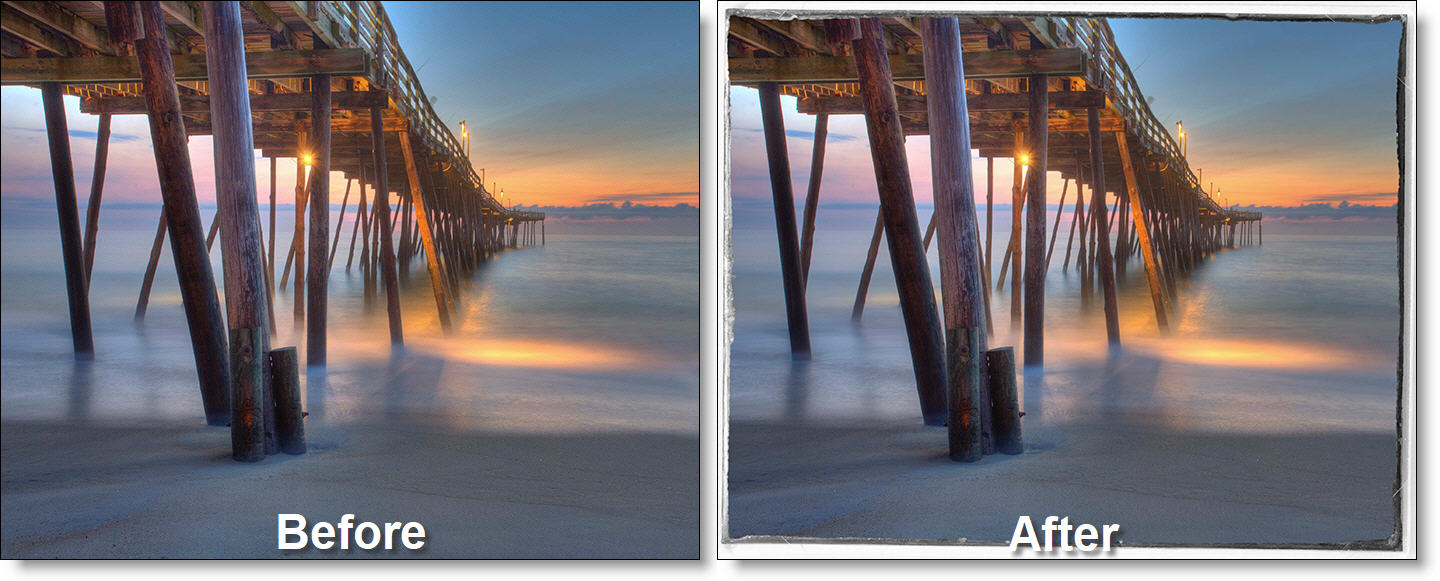 Choose from 11 different borders or Custom to create variable colored, softened borders.