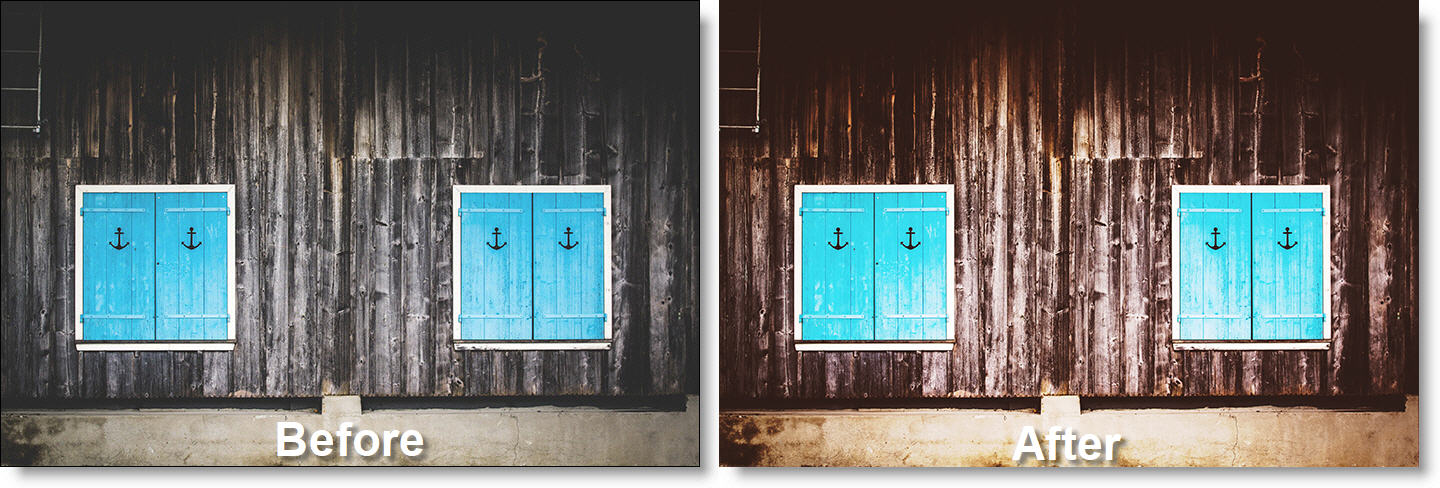 Grain simulates film grain with control of the size, softness and intensity. In addition, a Film Response parameter controls where you will see grain in the image. Go to the
