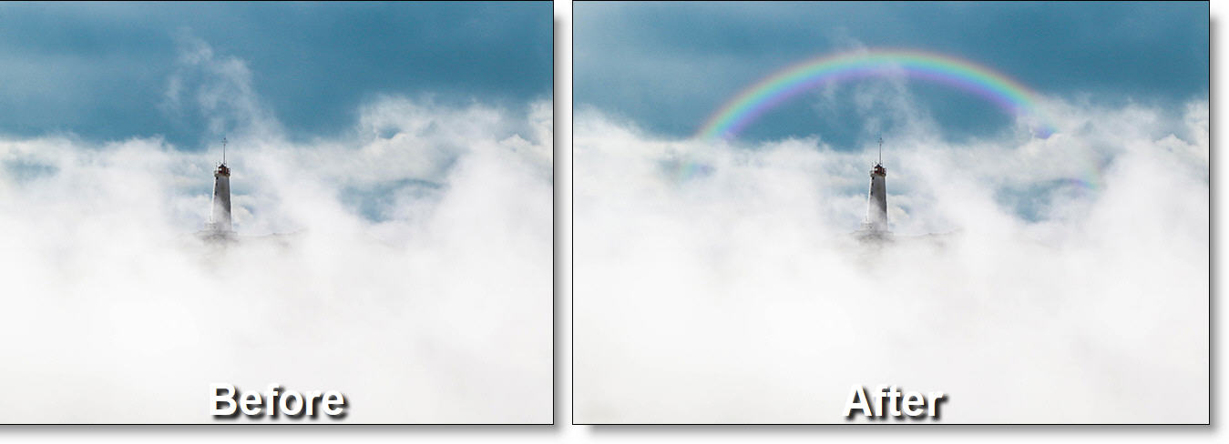 The rainbow is added to the image using a normal composite function.