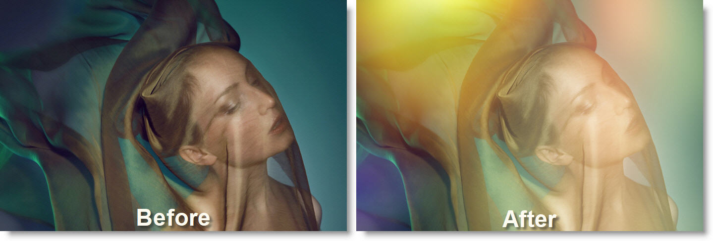 The light leak is blended with the image using a function that helps prevent overly bright results.