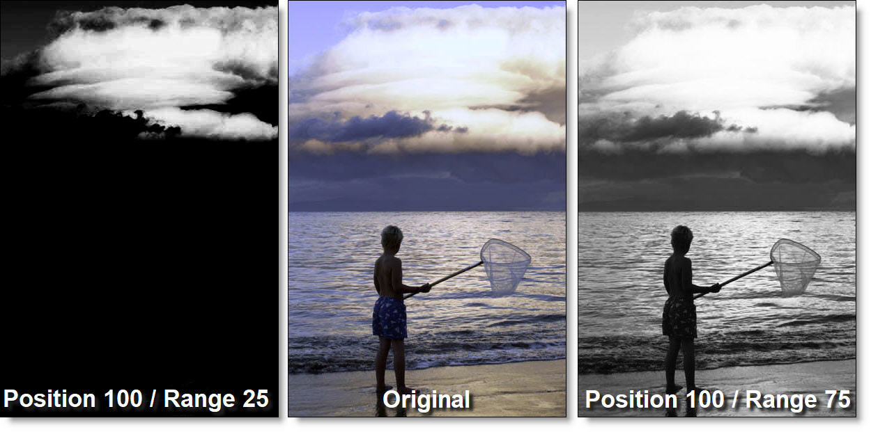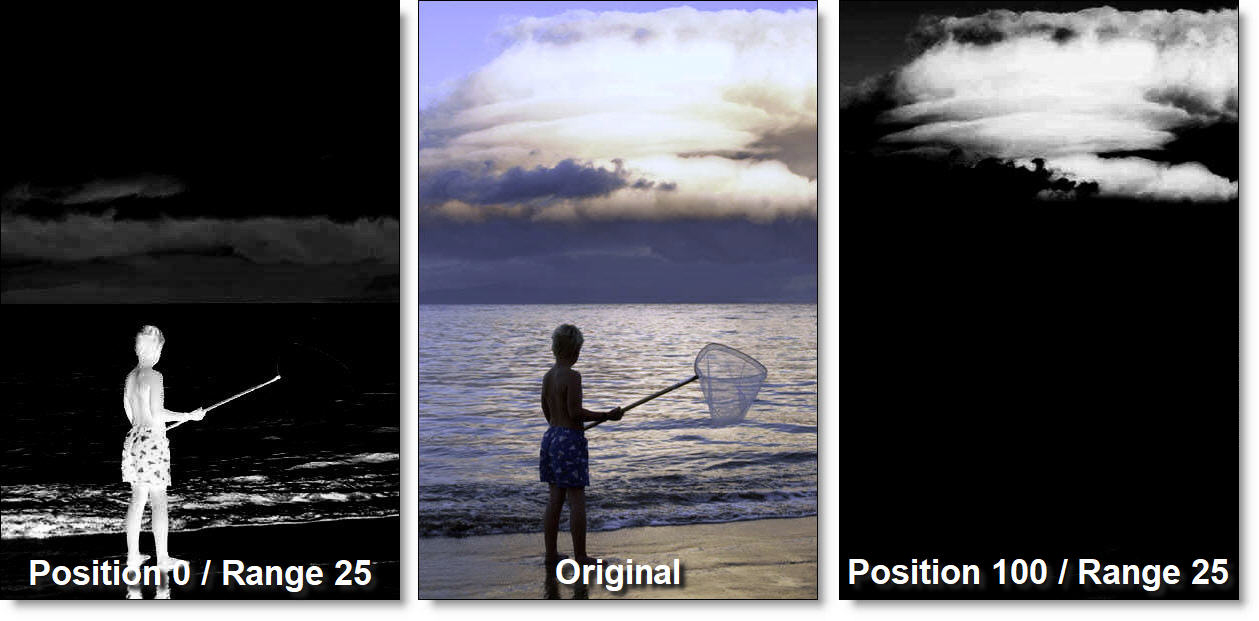 A mask is created based on the hue of the image. When adjusting the Position parameter, you are selecting different hues.