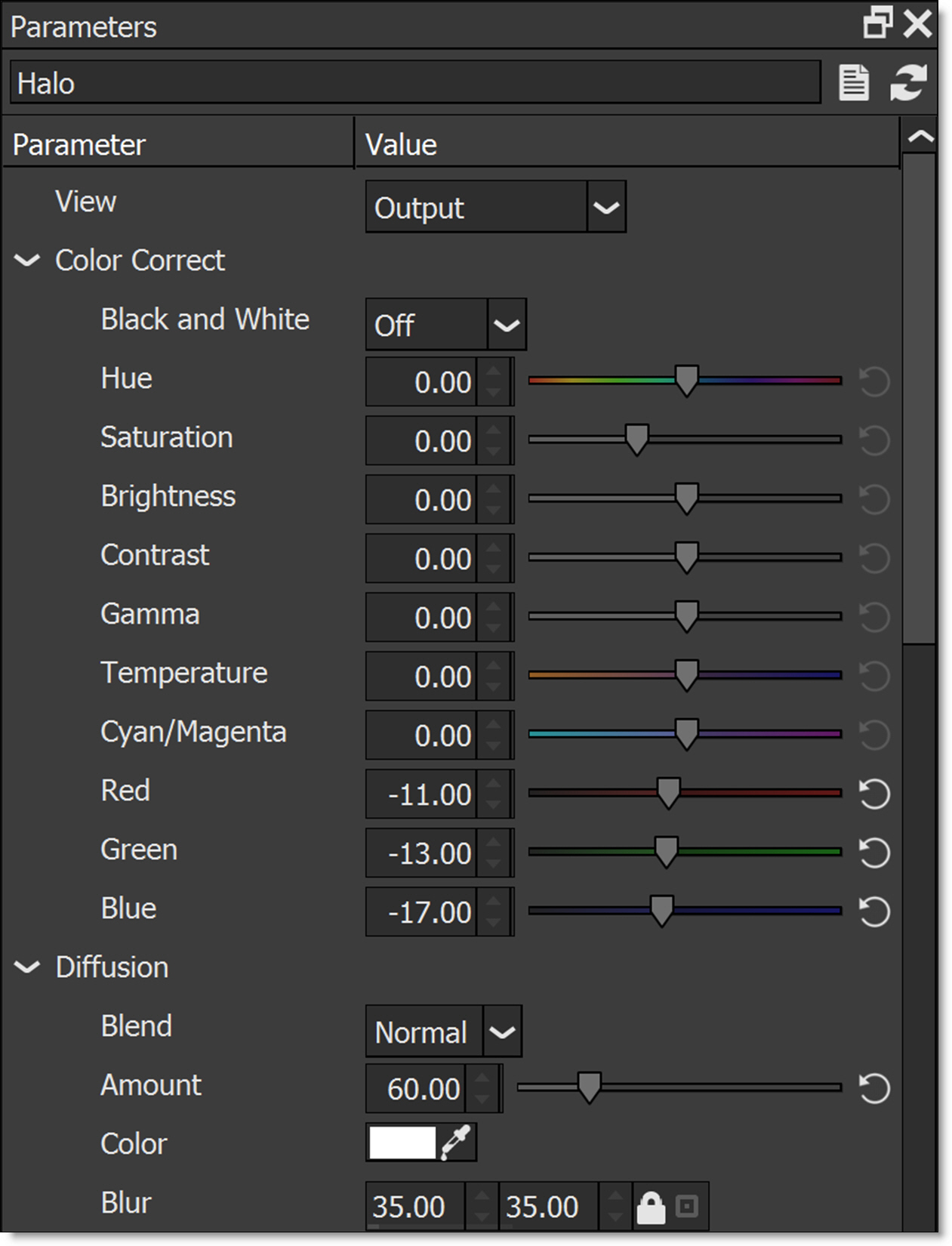 2 In the Parameters window, adjust the filter parameters to your liking.